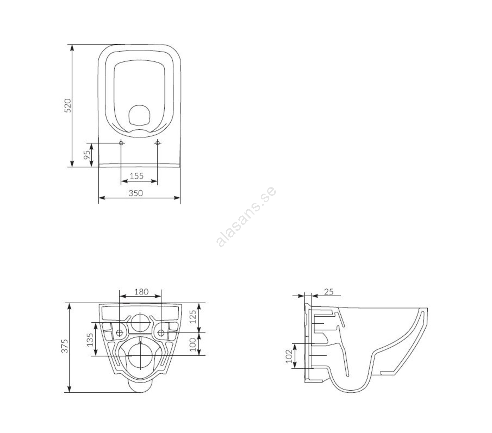 • Toaletten använder ett spolsystem med 3 och 5 l spolmängd.