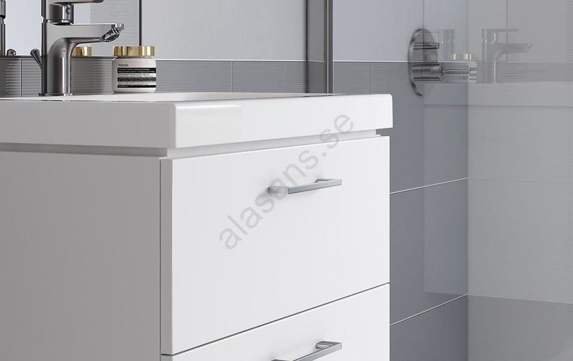 • Skåpet har två rymliga lådor med mjukstängning och kromade handtag.