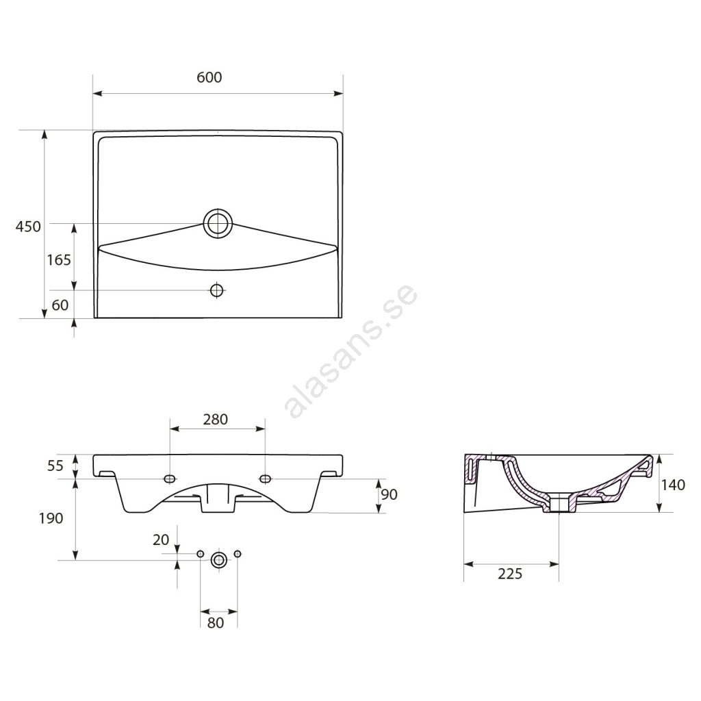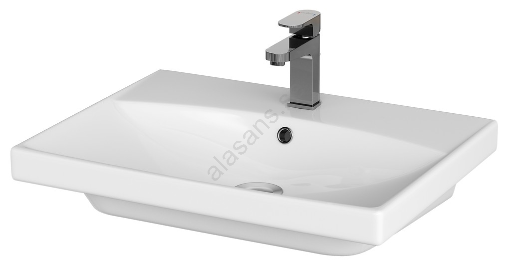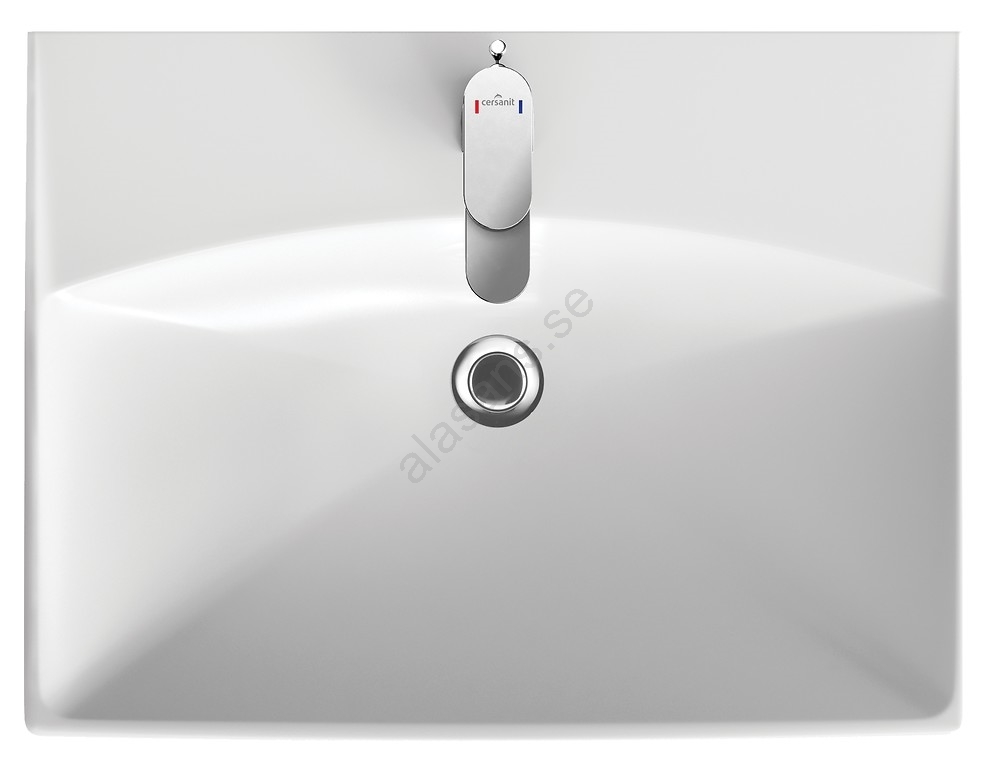 • Det keramiska tvättstället har en klassisk rektangulär form med hål för blandare och överfyllnad.