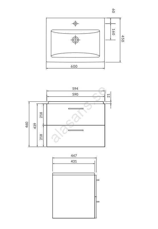 • Det keramiska tvättstället har en klassisk rektangulär form med hål för blandare och överfyllnadsskydd.