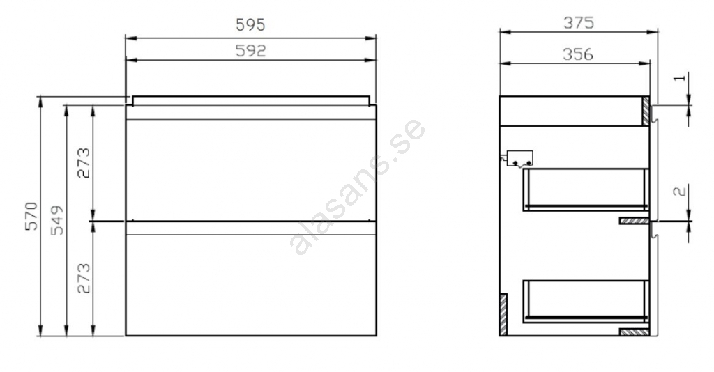 • Skåpet har två rymliga lådor med mjukstängning och dolda handtag.