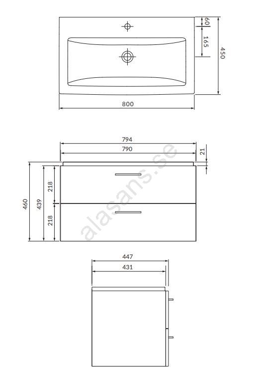 Cersanit S801-338-DSM - Vägghängt badrumsskåp med tvättställ LARA 80 cm vit | Alasans