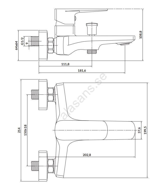 • Denna ettgrepps badkarsblandare är en elegant detalj i varje badrum.