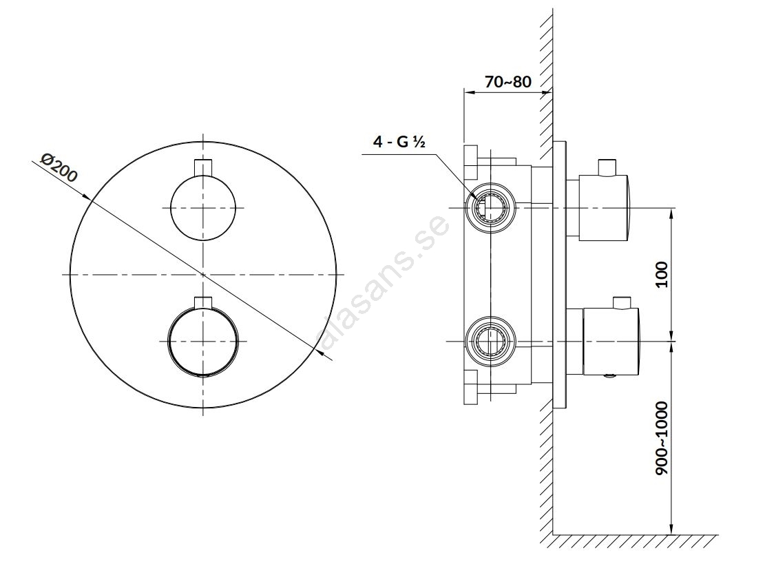 • Innehåller ett högkvalitativt termostatiskt vred med omkopplare för vattenflöde till utlopp/duschhandtag.