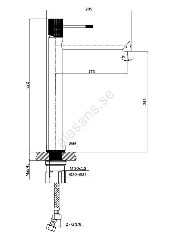 • Anslutningsslangar med en längd på 60 cm ingår.