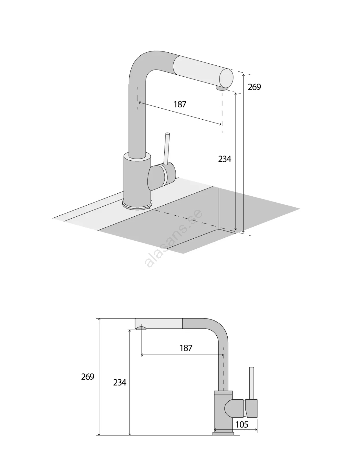 • Räckvidd (utlopp): 187 mm.