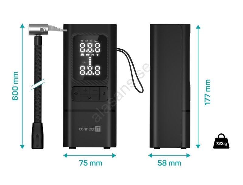 CONNECT IT CFF-4500-BK - Digital bärbar fickkompressor AirFlow 80W/6000 mAh svart | Alasans