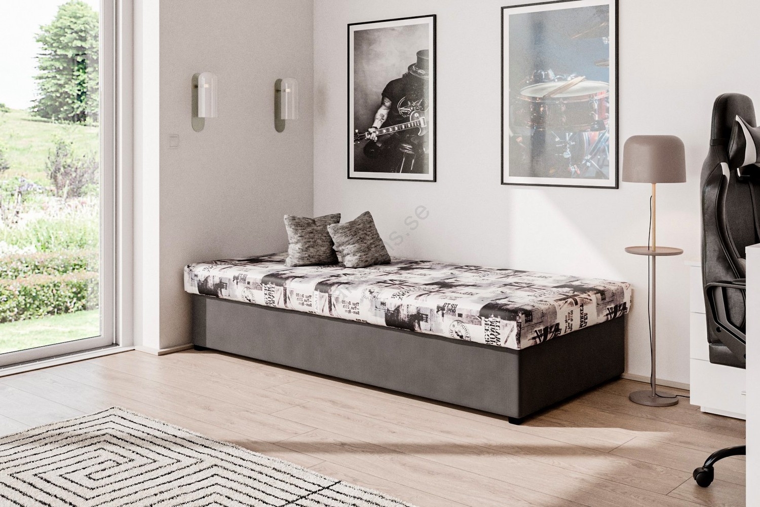 Säng med resårmadrass och förvaring NOE 90x200 grå/svart | Alasans