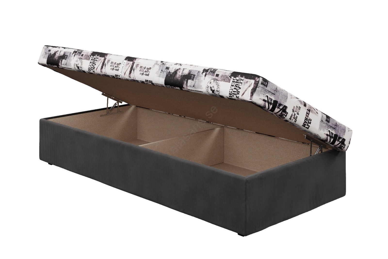 • Sängen är utrustad med stort förvaringsutrymme med sidoupplift för förvaring av sänglinne och andra säsongsföremål.