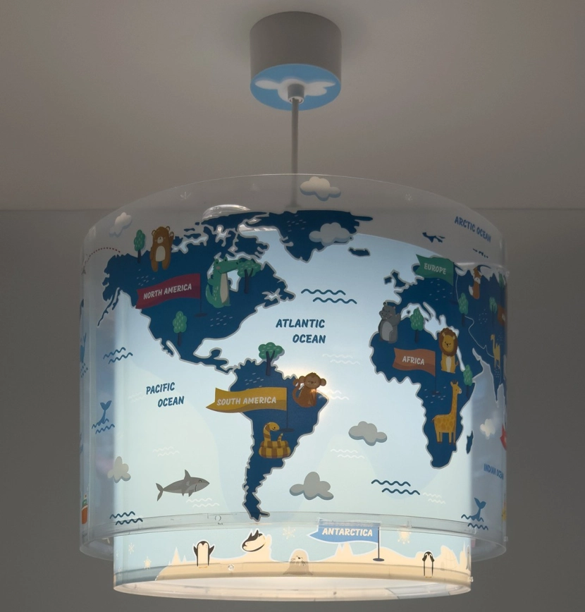 Dalber 40672 - Barnlampa WORLD 1xE27/15W/230V blå kännetecknar snygg och funktionell design. En glödlampa med E27 lock är lämplig för lampan. Här kan du köpa andra glödlampor till förmånliga priser. Du kommer att få ett intressant tillägg till ditt hem.