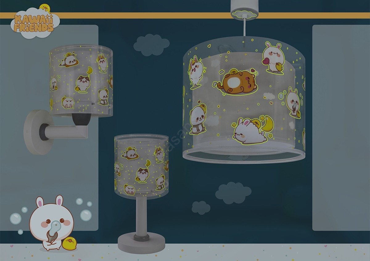 Dalber 41762E - Barnlampa KAWAII FRIENDS 1xE27/15W/230V grå