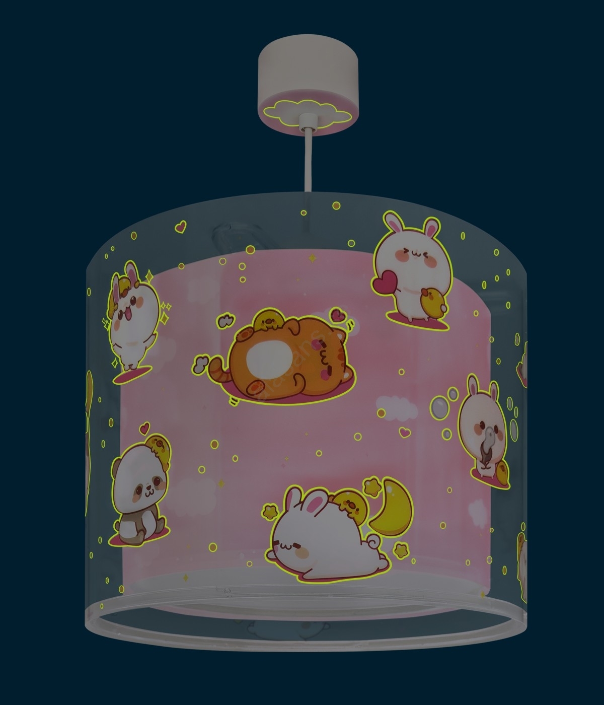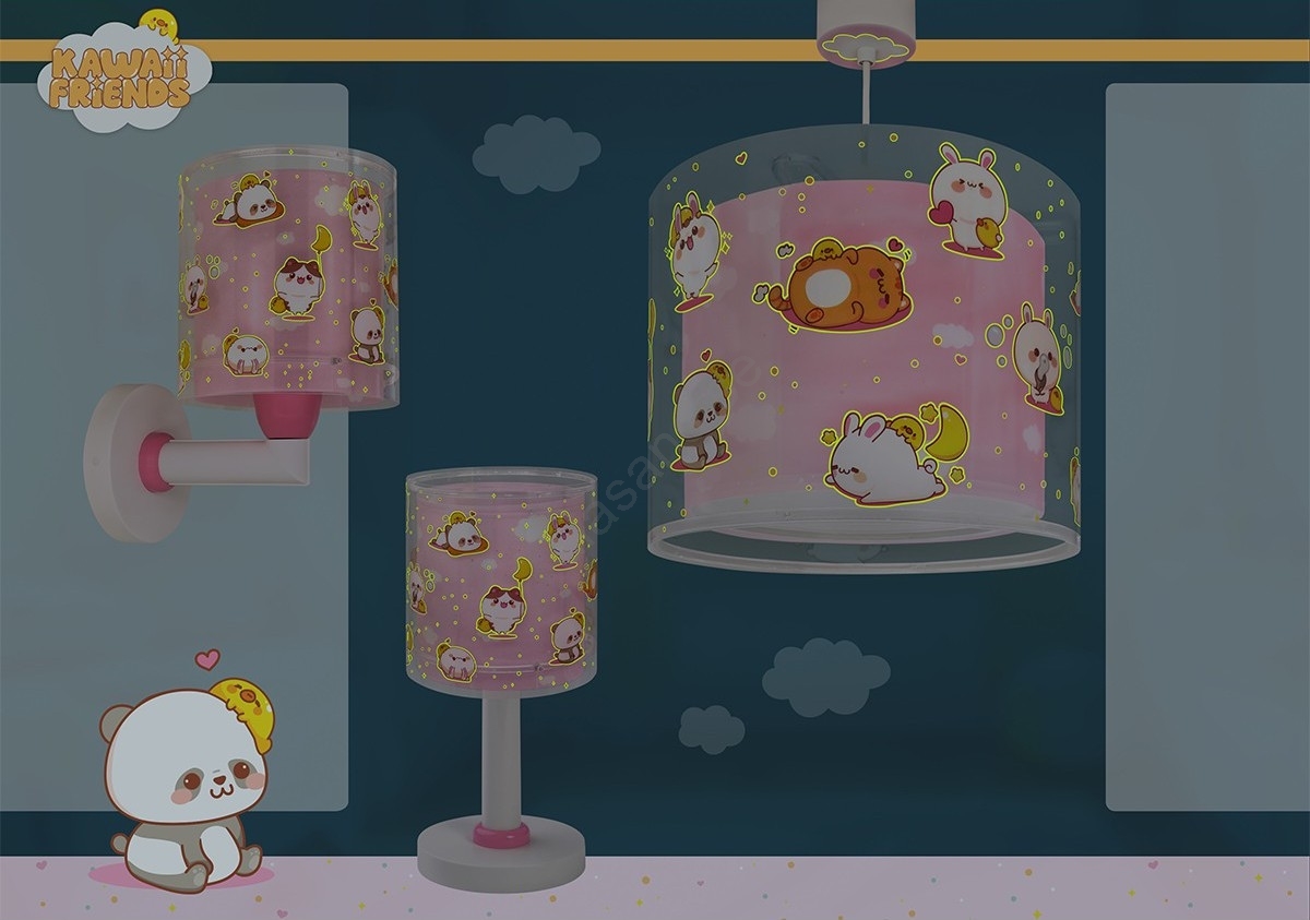 Dalber 41762S - Taklampa för barn KAWAII FRIENDS 1xE27/15W/230V rosa kännetecknar snygg och funktionell design. En glödlampa med E27 lock är lämplig för lampan. Här kan du köpa andra glödlampor till förmånliga priser. Du kommer att få ett intressant tillägg till ditt hem.