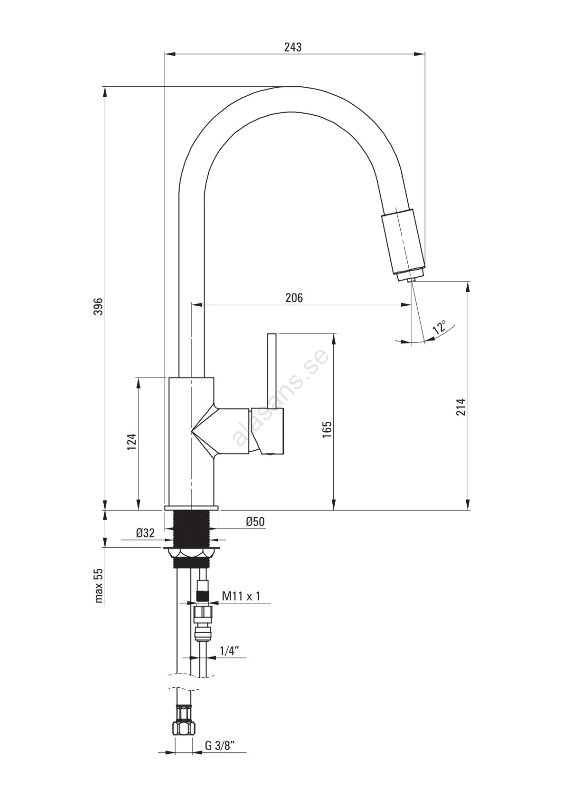 • I förpackningen ingår anslutningsslangar med en längd på 45 cm.