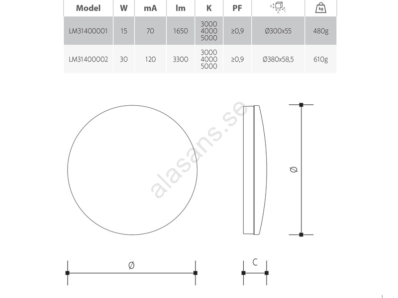 Dimbar LED-takarmatur för badrum LED/15W/230V Ø 30 cm IP54 | Alasans