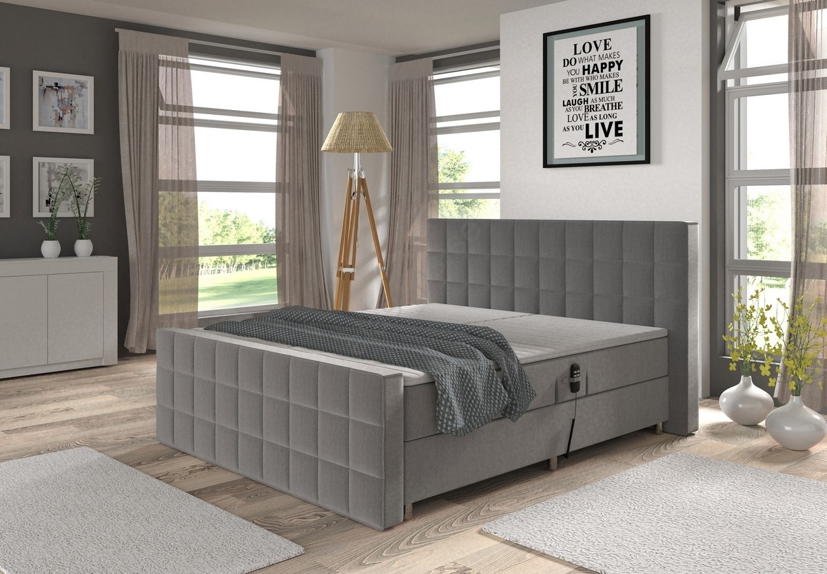 Elektriskt ställbar stoppad säng HELEN 180x200 cm med madrasser och toppmadrass, grå | Alasans