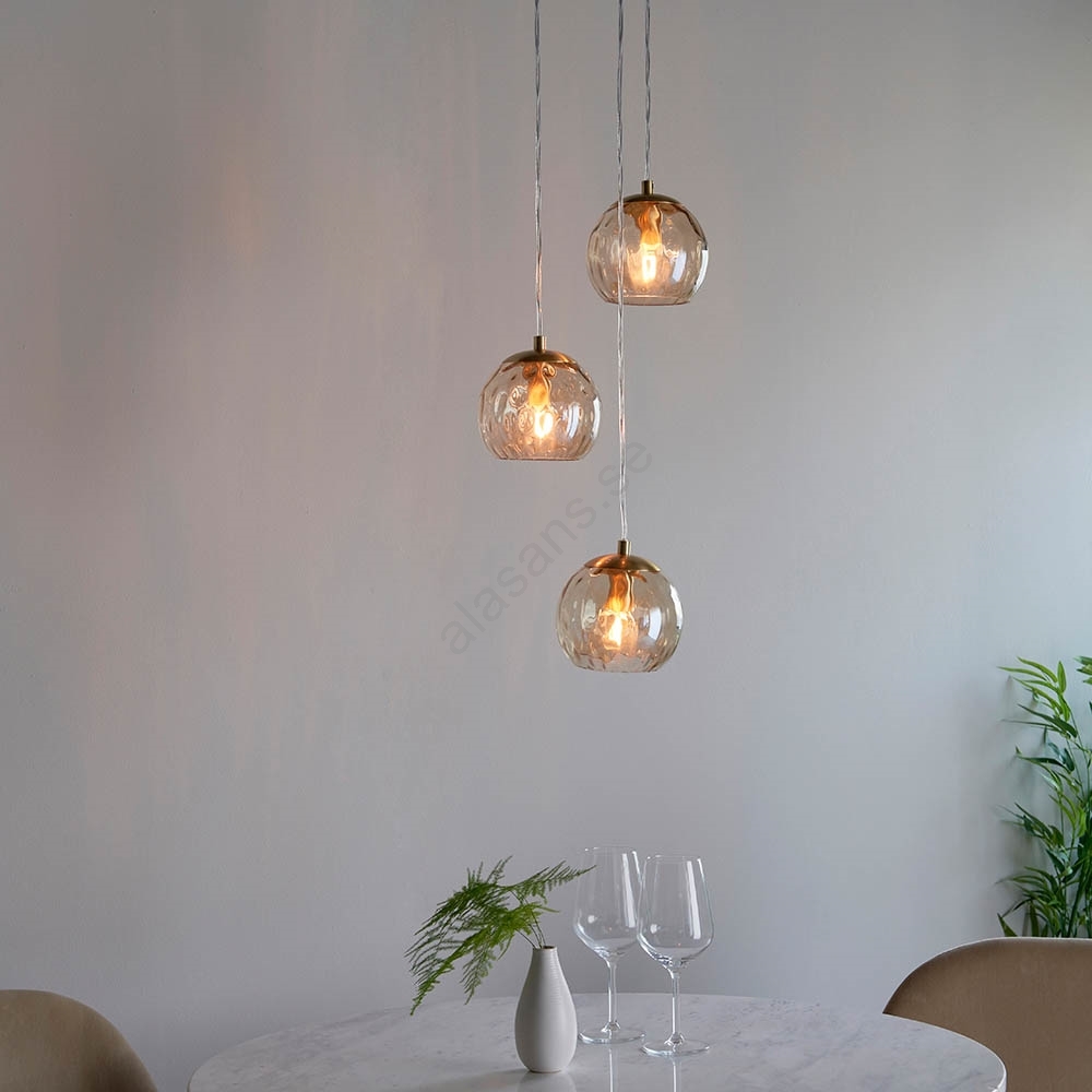 Endon 91971 - Pendellampa på vajer DIMPLE 3xE14/7W/230V guld/rökig beige | Alasans