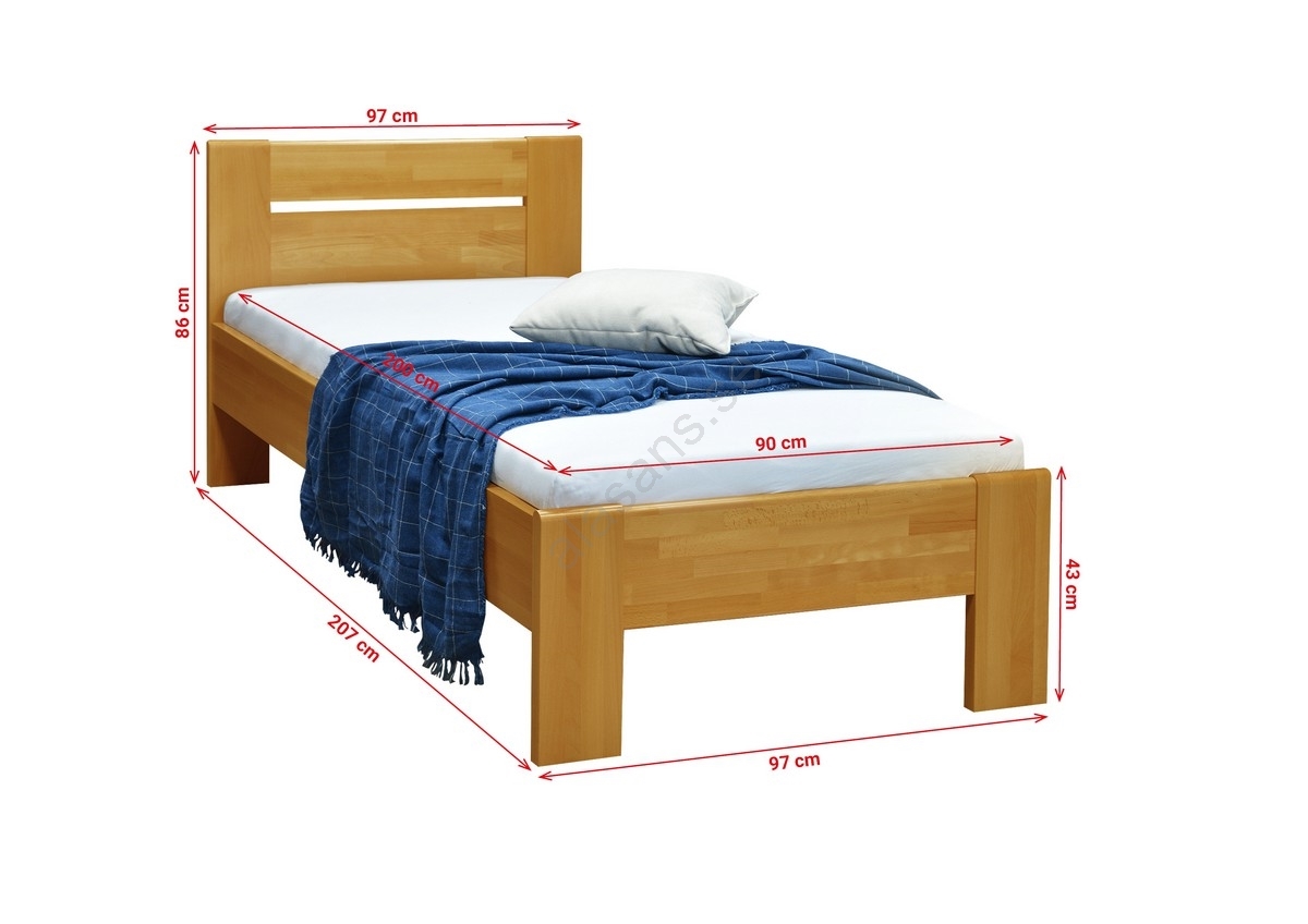 Enkelsäng AMBER 90x200 cm, ljus valnöt | Alasans