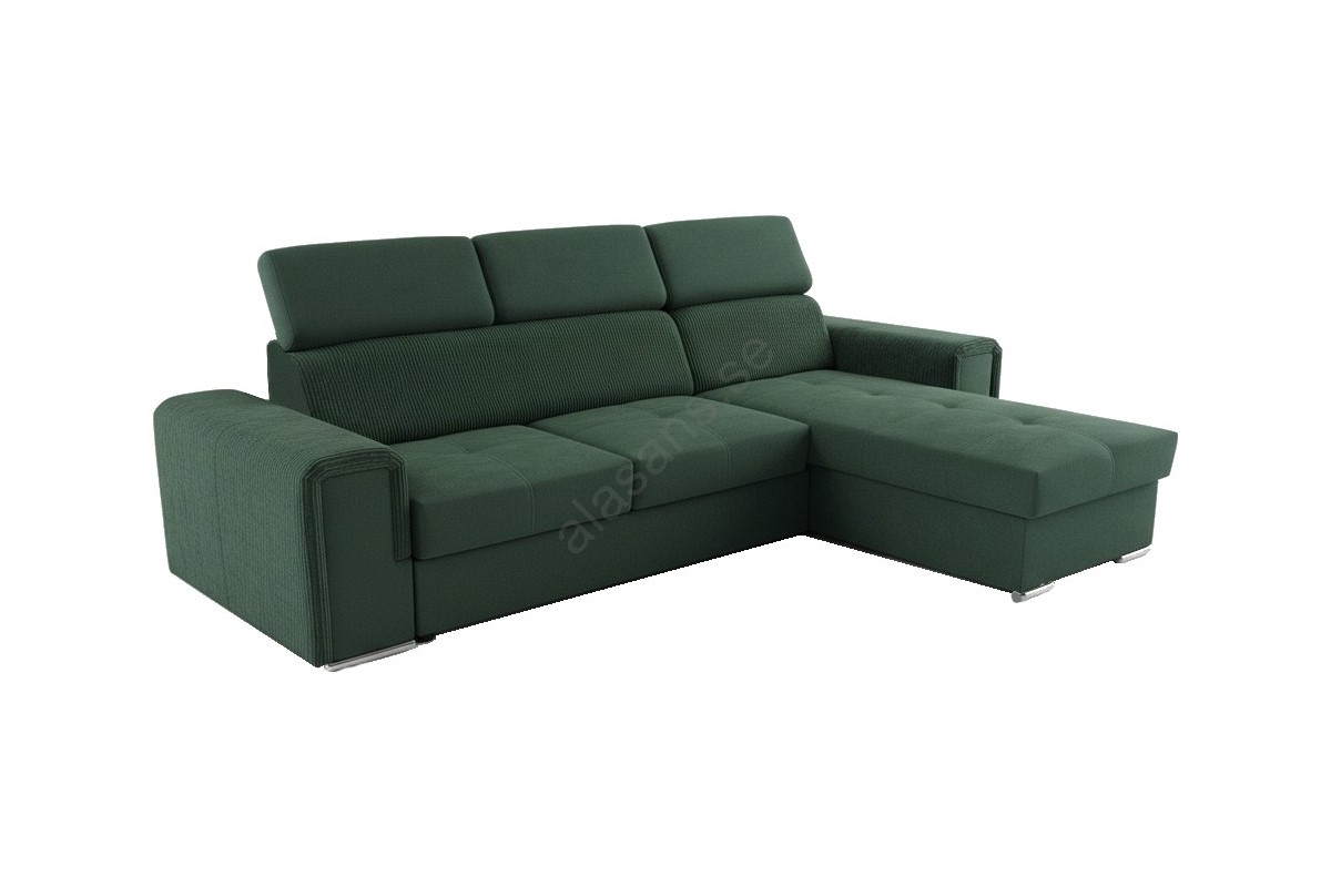 Universell L-formad hörnsoffa med bäddfunktion och förvaringsutrymme SALVADA grön | Alasans