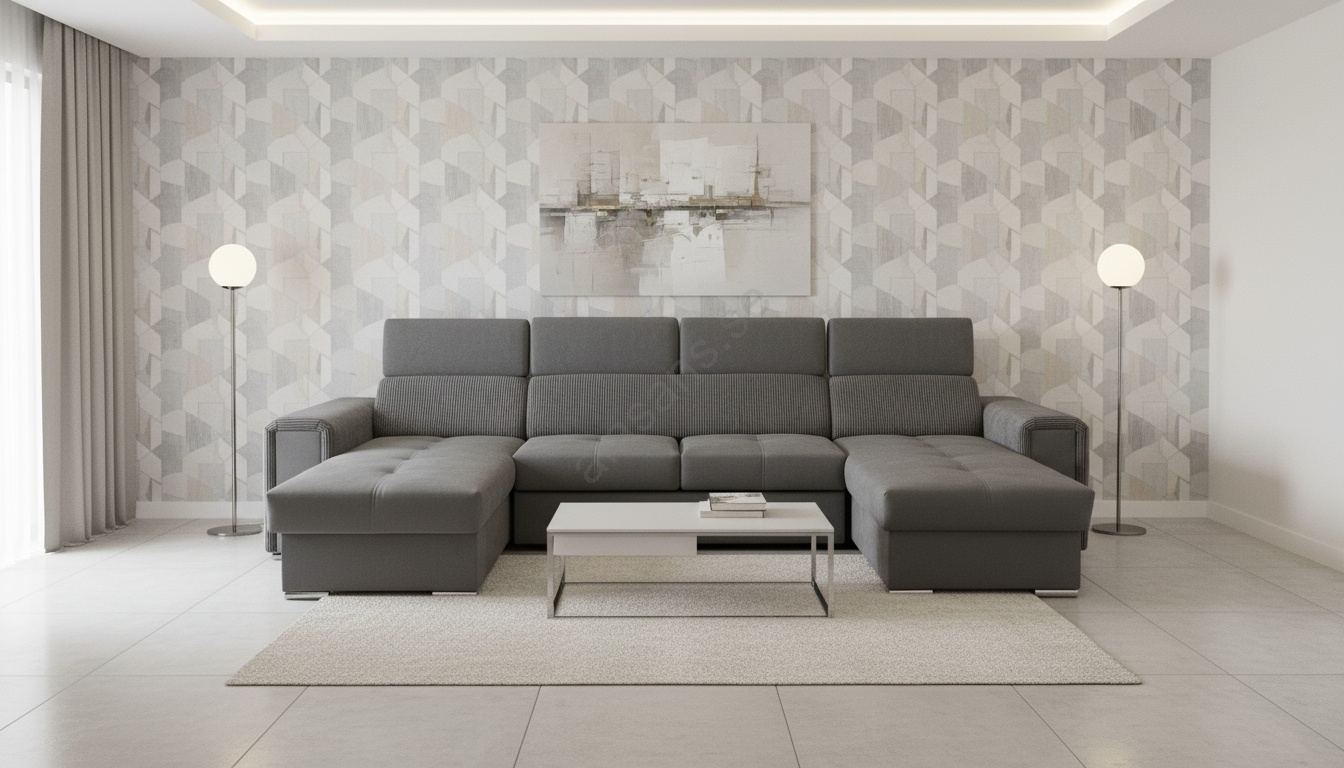 • Rymlig U-formad hörnsoffa erbjuder både komfort och stilren design.