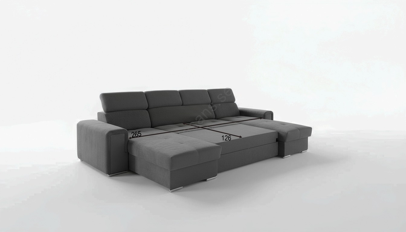• Bäddbar U-formad hörnsoffa med förvaringsutrymme och flexibel hörnplacering SALVADA mörkgrå