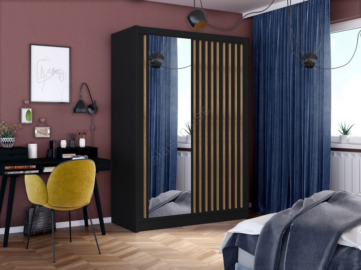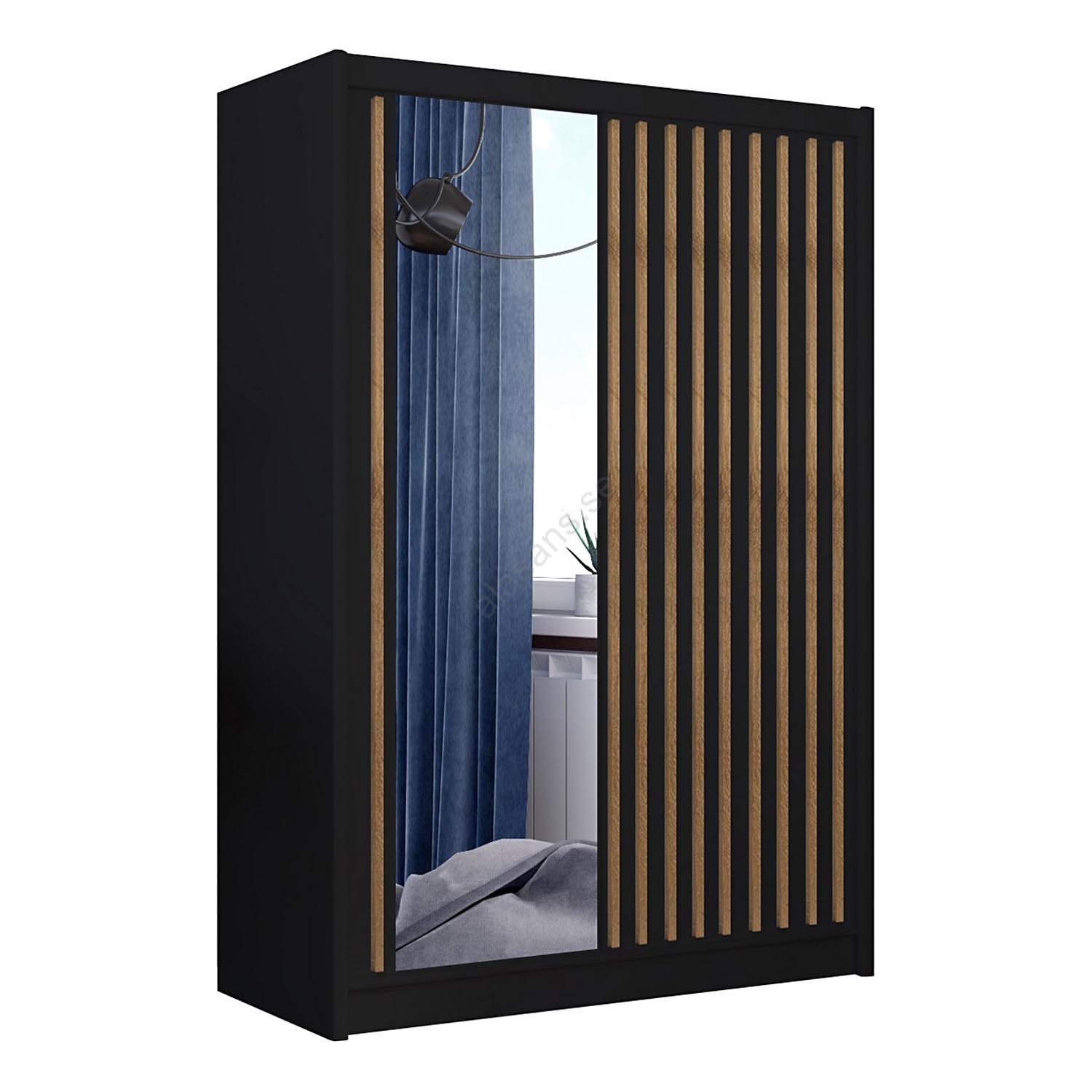 Garderob med spegel SANTINO 150x215 cm svart/craft-ek | Alasans