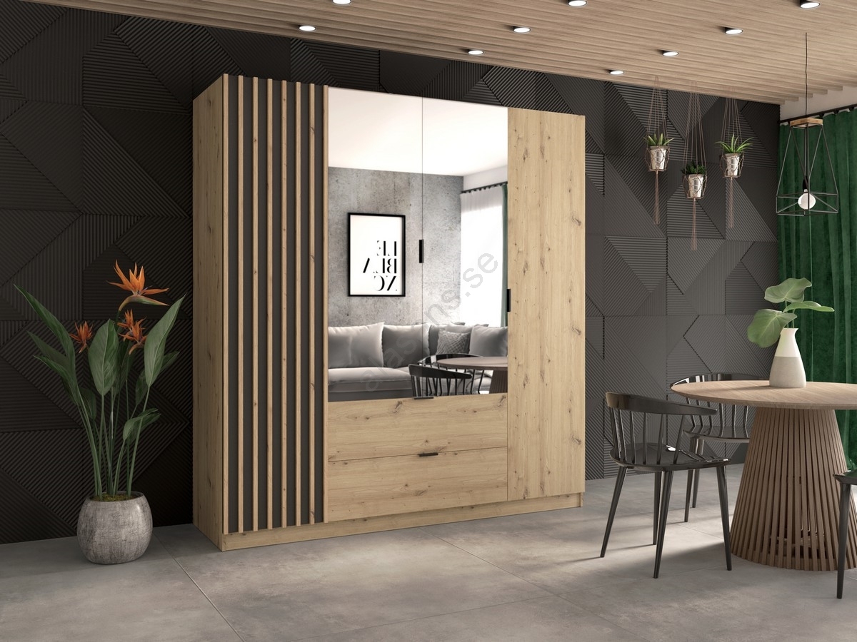 Garderob med spegel VISTA 200x215 cm ek artisan/grafit | Alasans