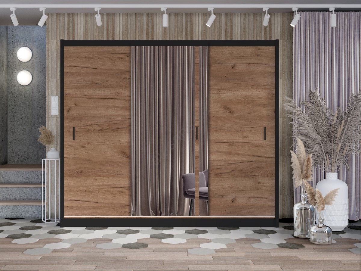 • Garderobsskåp med spegel MIRO 250x215 cm ek craft/svart