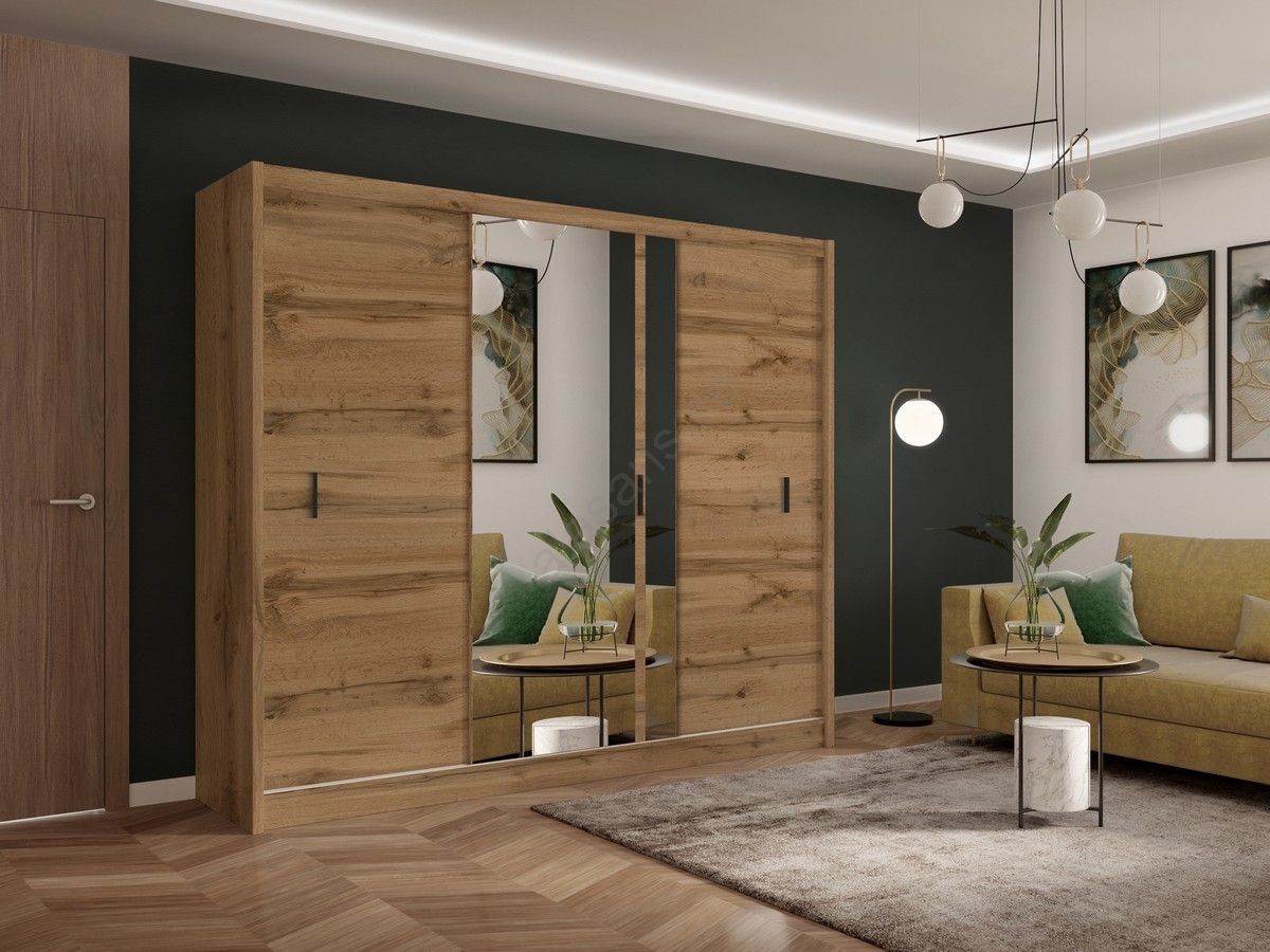 • Garderobsskåp med spegel SABRINA 250x215 cm ek craft