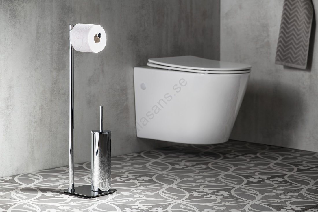 Gedy - Fristående WC-borste med hållare för toalettrulle FLORI, blank krom | Alasans