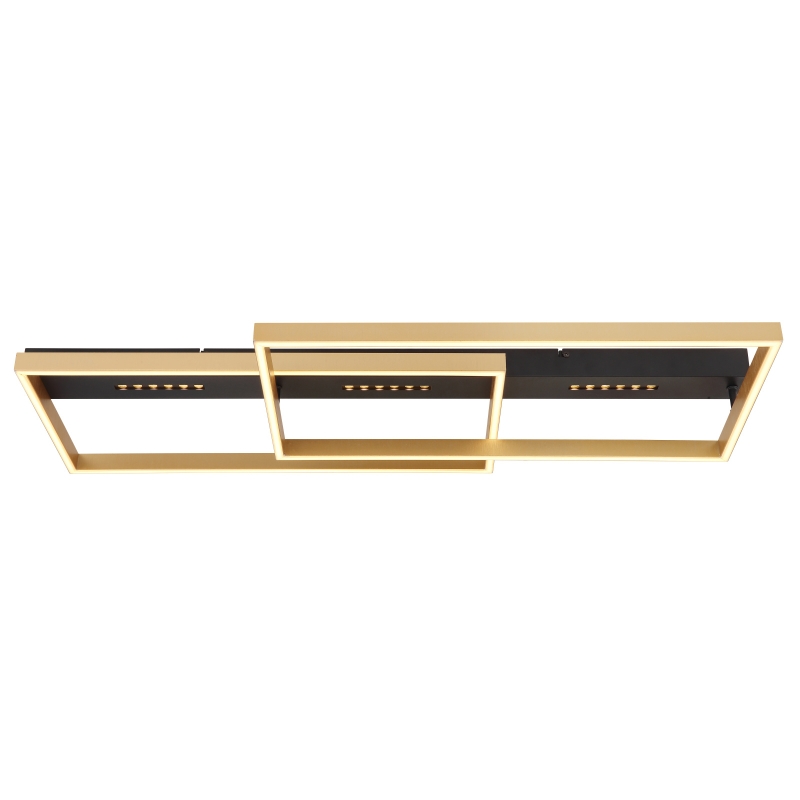 • Taklampan har ett matt svart metallfäste i taket och två guldtonade rektangulära LED-paneler som ger ett stilrent och tidlöst intryck.