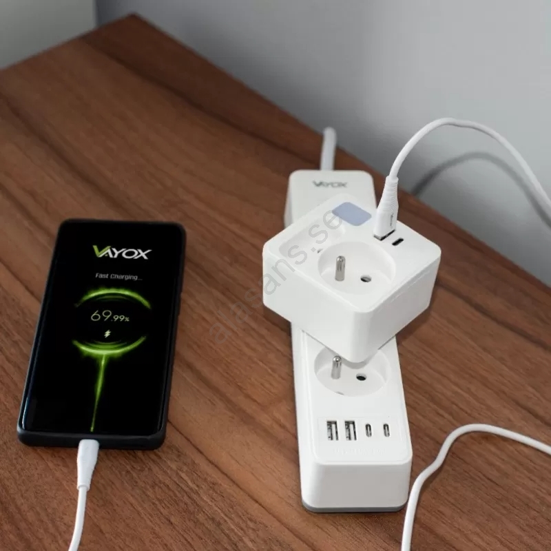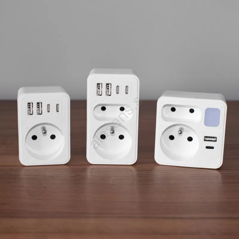 • Multifunktionell 3 i 1-enhet: grenuttag, laddare och nattlampa.