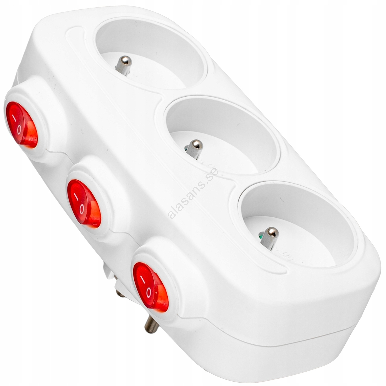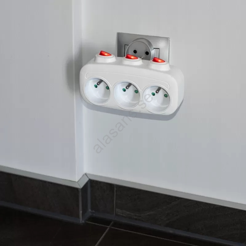 Grenuttag med strömbrytare, 3 uttag | Alasans