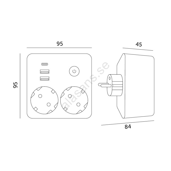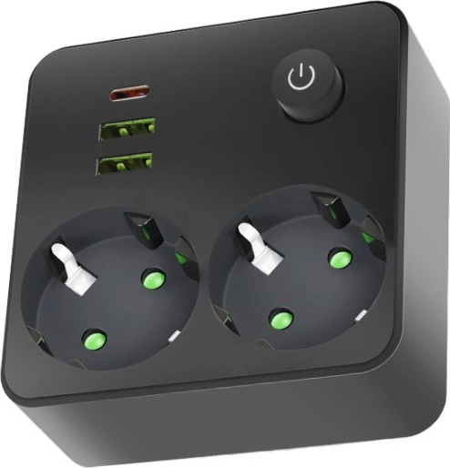 Grenuttag med strömbrytare LINEA 2 x 230 V + 3 x USB A/C SCHUKO svart | Alasans