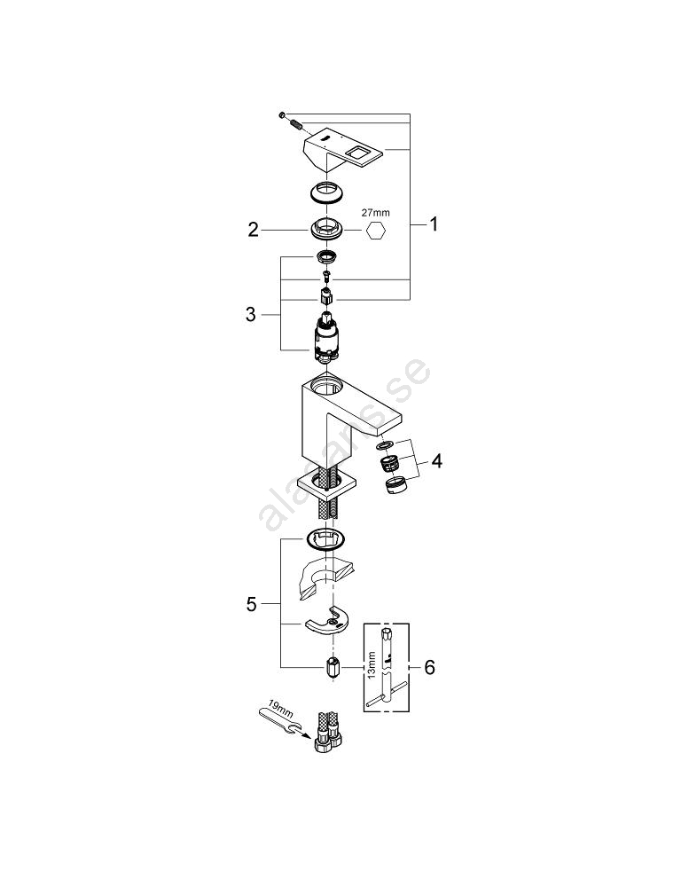 GROHE 2313200E - EUROCUBE tvättställsblandare, storlek S, polerad krom | Alasans