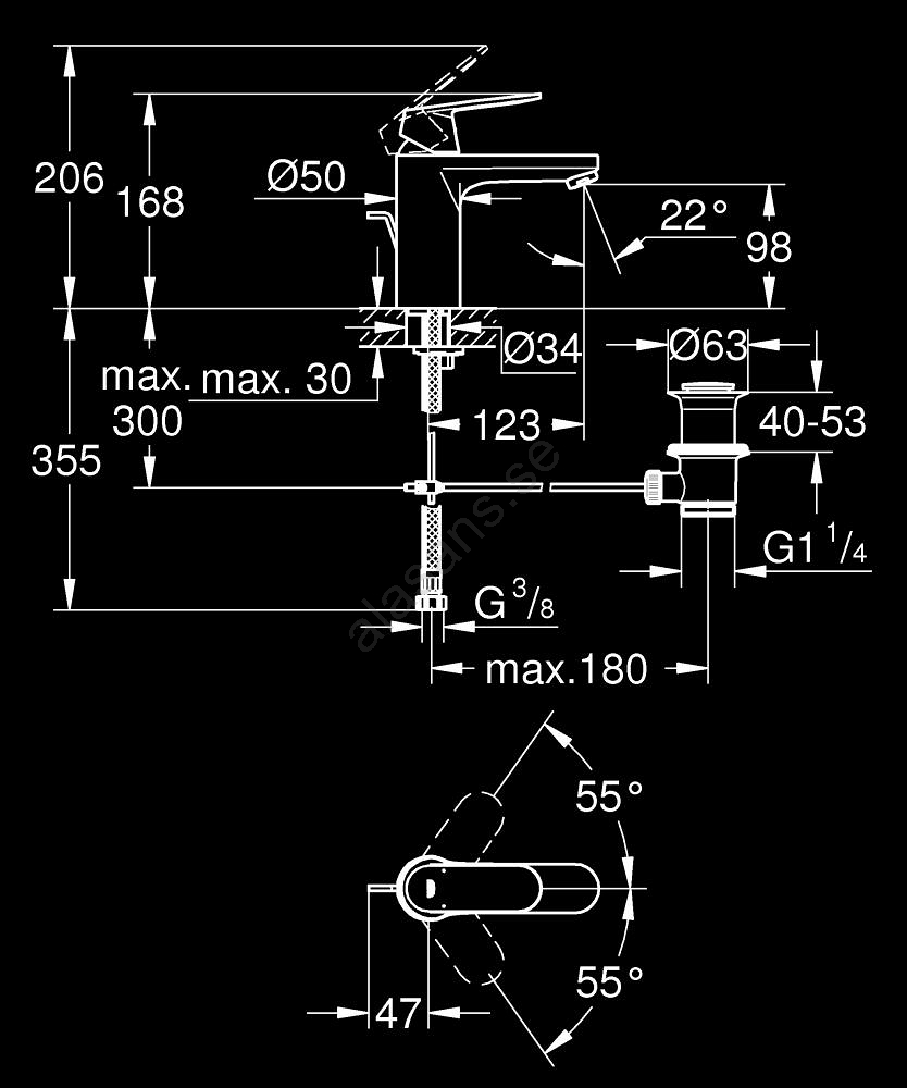 • GROHE Water Saving-teknik minskar vattenförbrukningen med upp till 50 % samtidigt som fullt flöde behålls.