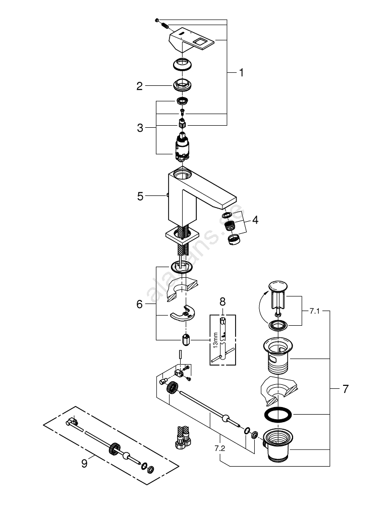 GROHE 23445AL0 - Tvättställsblandare EUROCUBE, storlek M, grafit | Alasans