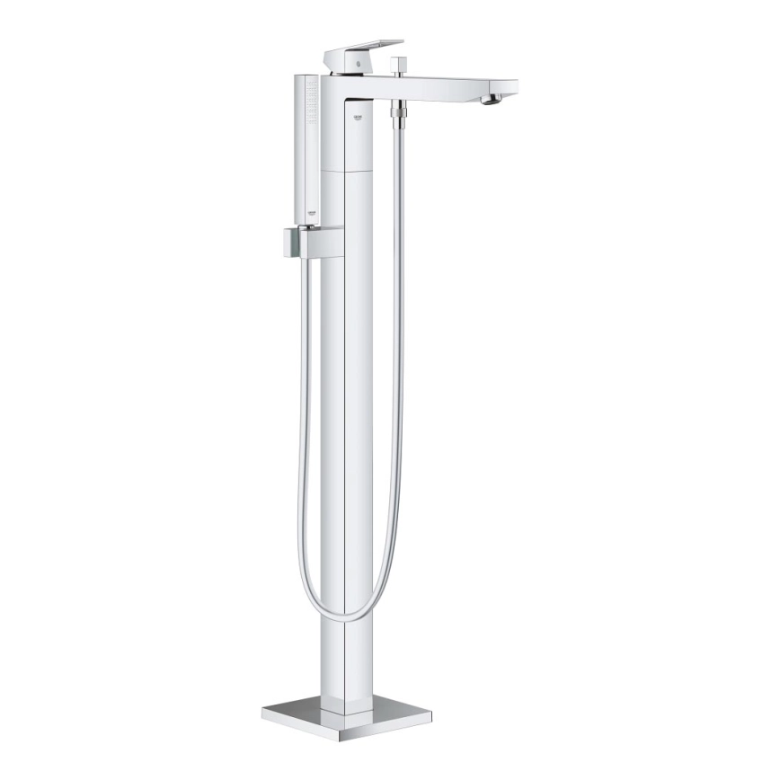 • Golvmonterad ettgrepps badkarsblandare GROHE Eurocube med modern kubistisk design för fristående badkar.