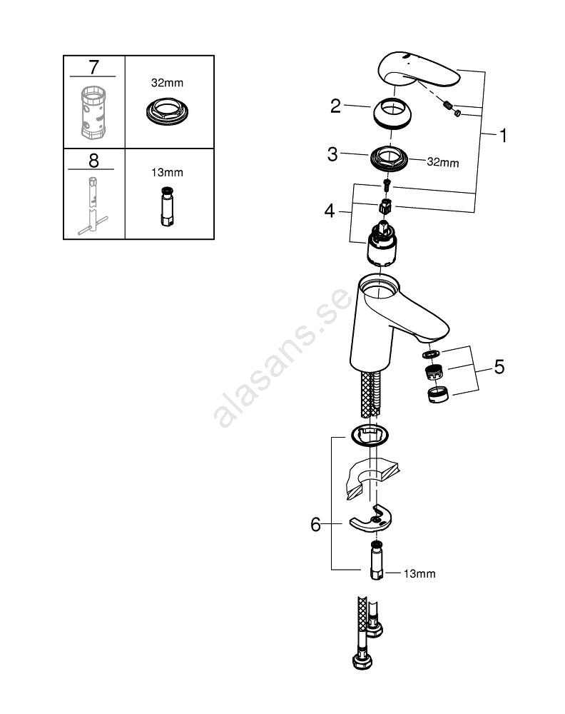 GROHE 23715003 - EUROSTYLE tvättställsblandare, storlek S, polerad krom | Alasans