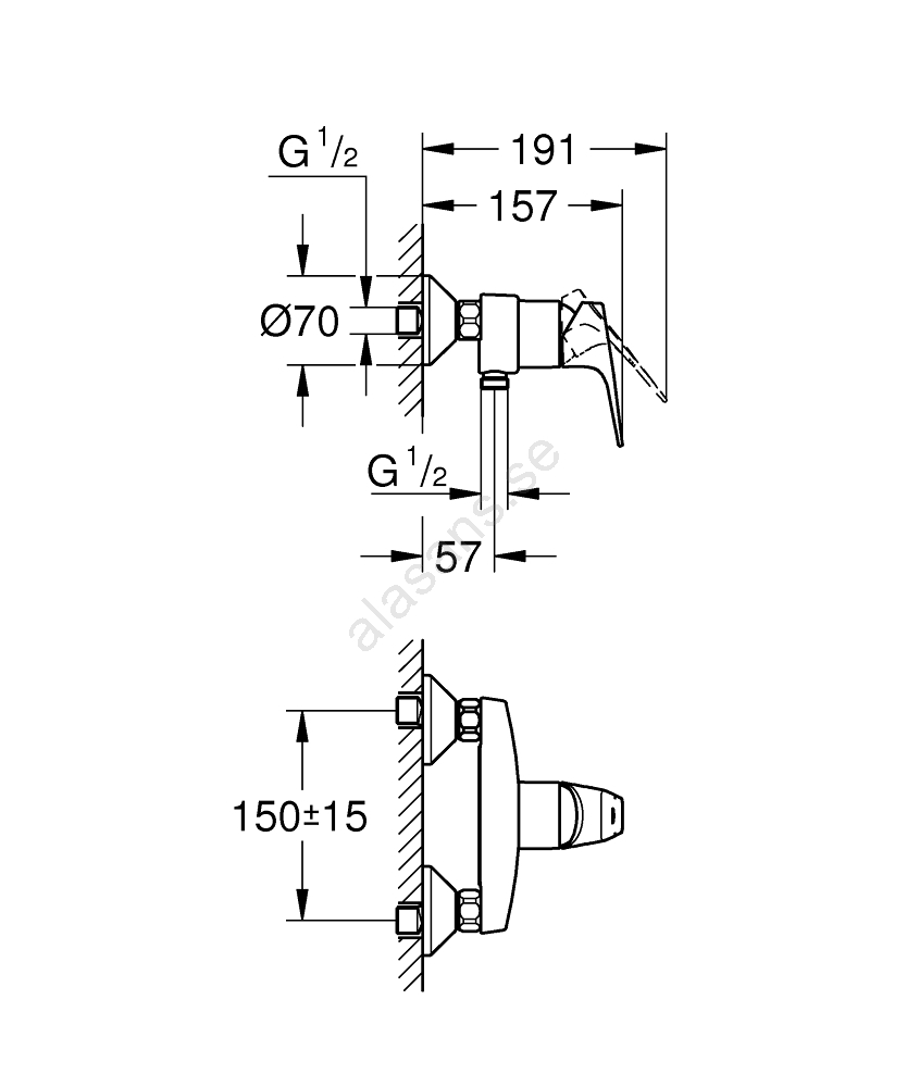 • Modern väggmonterad spakblandare för dusch.