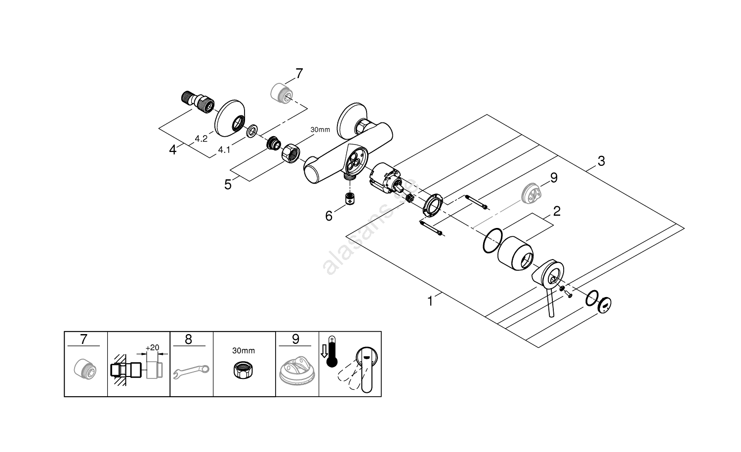 • I förpackningen ingår GROHE QuickSpanner för snabb och enkel installation utan extra verktyg.