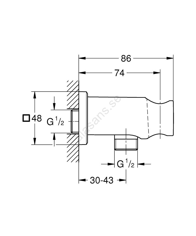 GROHE 26659000 - Vägganslutning med duschhållare RAINSHOWER 48 × 48 mm krom | Alasans