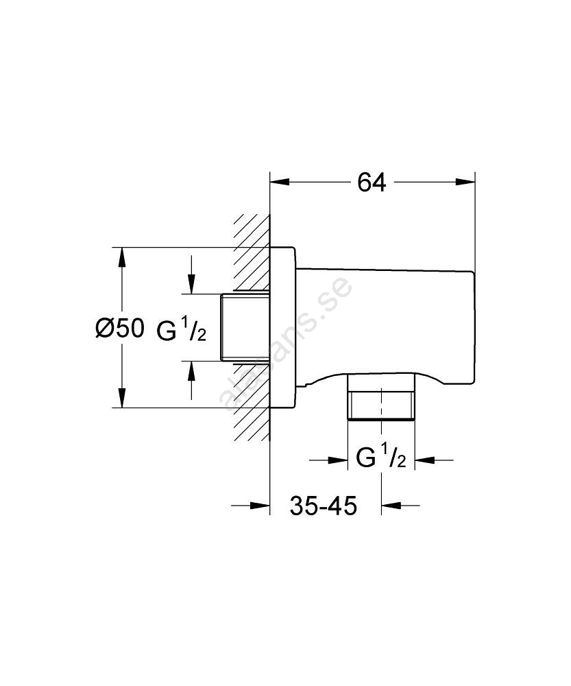 • Väggvinkel DN 15 för anslutning av handdusch.