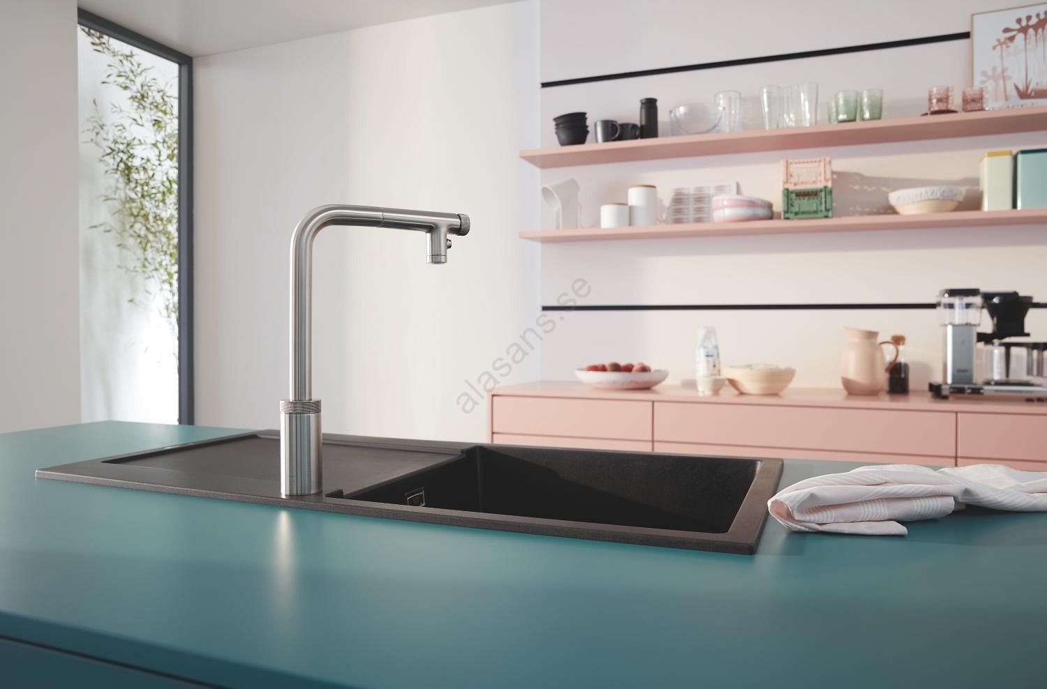 • Kompositdiskho GROHE K500 med avrinare – en robust produkt som är lätt att rengöra och dämpar ljud.