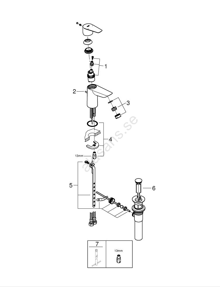 • Plastavloppssats 1" med dragstångsmanövrering.