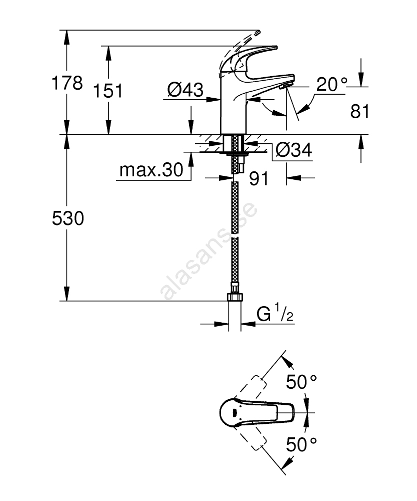 • Utan avloppsgarnityr, idealisk för tvättställ med integrerat avlopp.