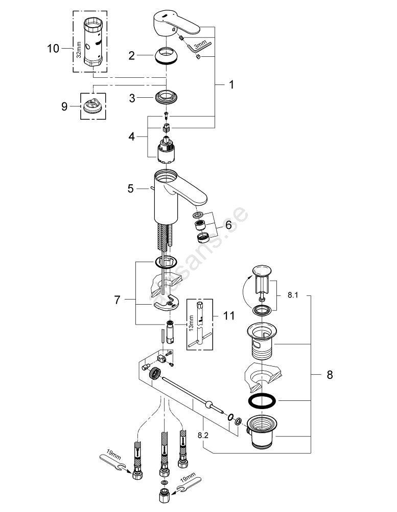 GROHE 33561002 - Tvättställsblandare EUROSTYLE COSMOPOLITAN DN 15 blank krom | Alasans