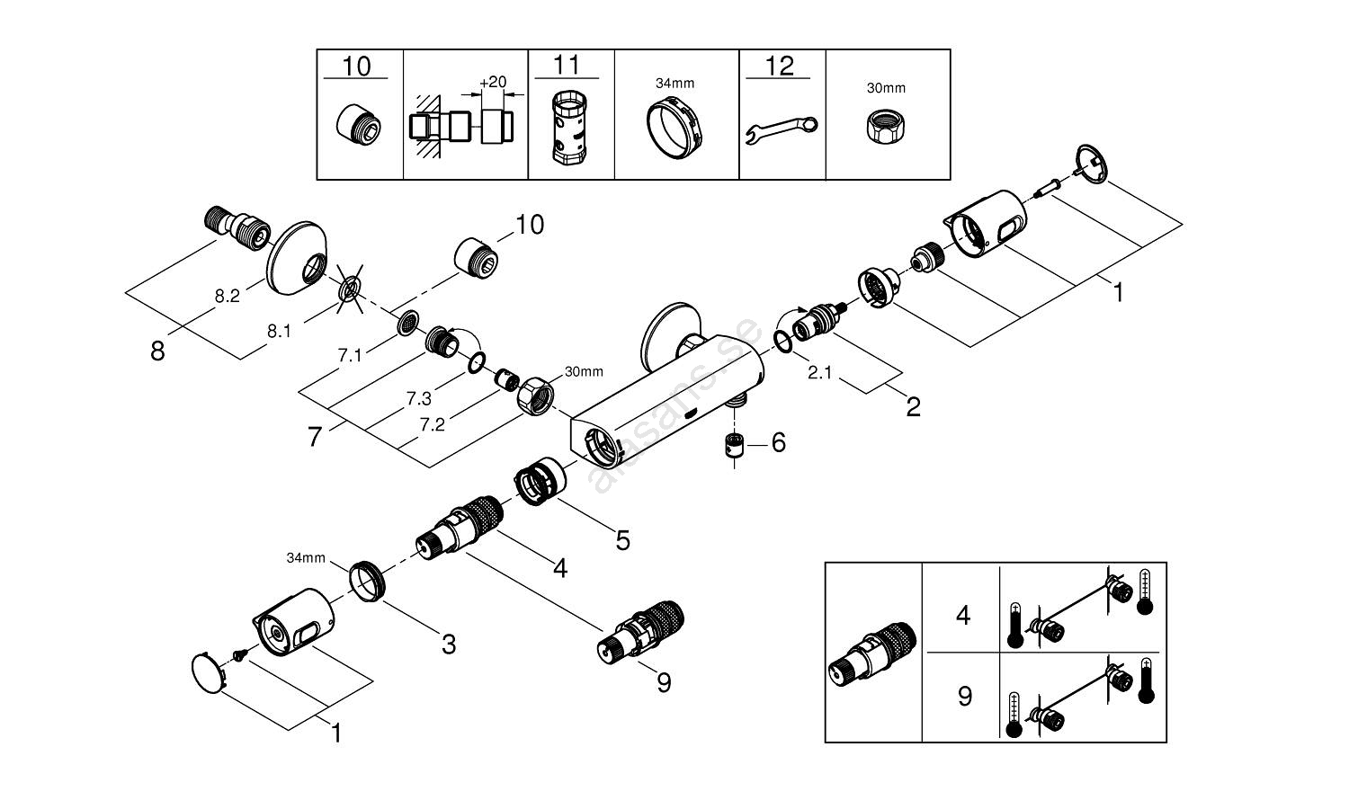 • Kompakt GROHE TurboStat-kassett med vaxelement för omedelbar inställning av önskad temperatur.