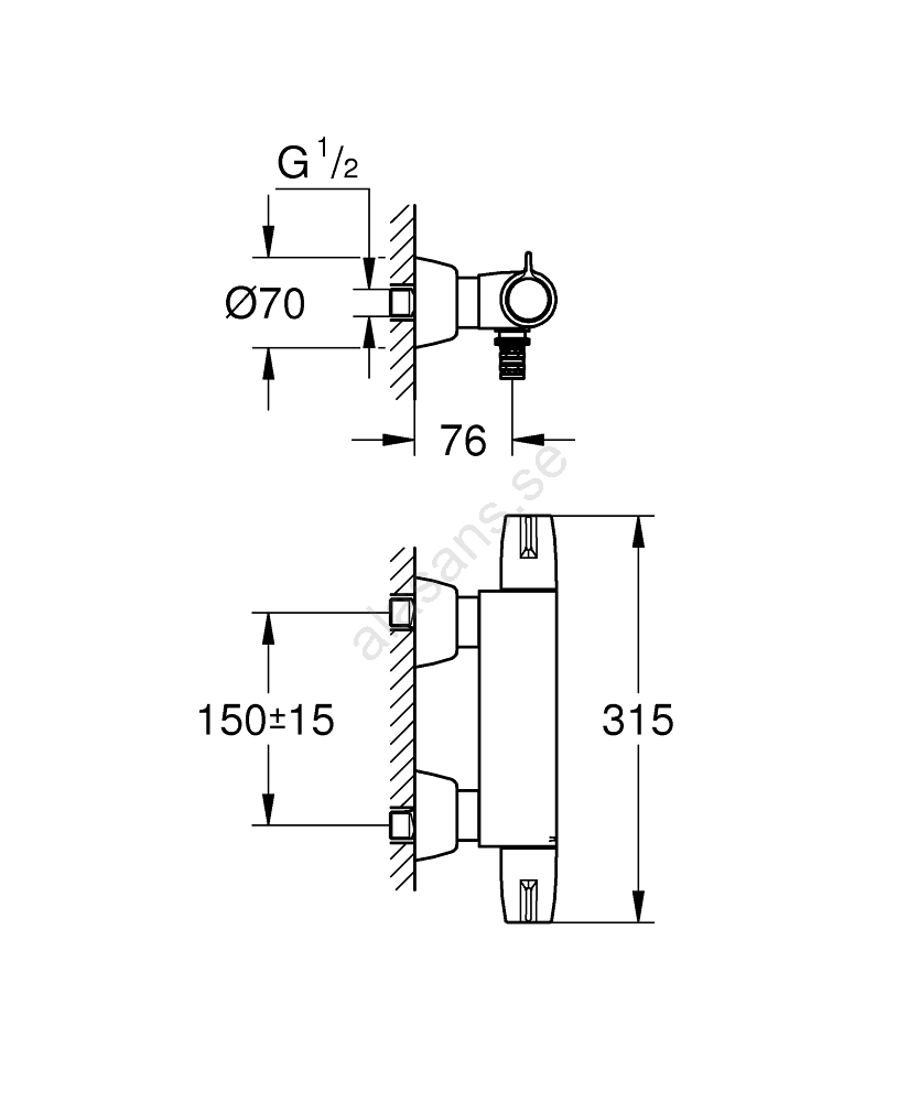 • Väggmonterad termostatblandare för medicinskt bruk – enkel att installera.