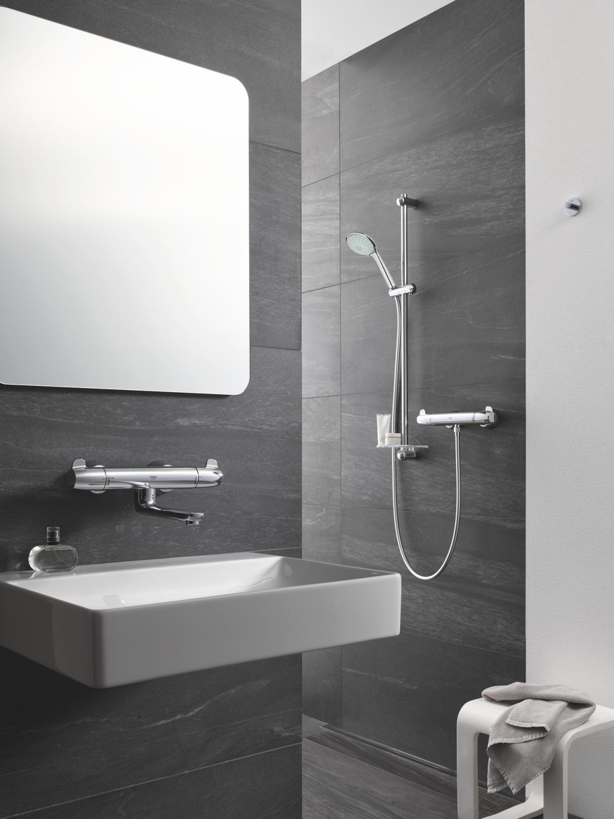 • GROHE SafetyPlus med fast temperaturspärr för ökad säkerhet.