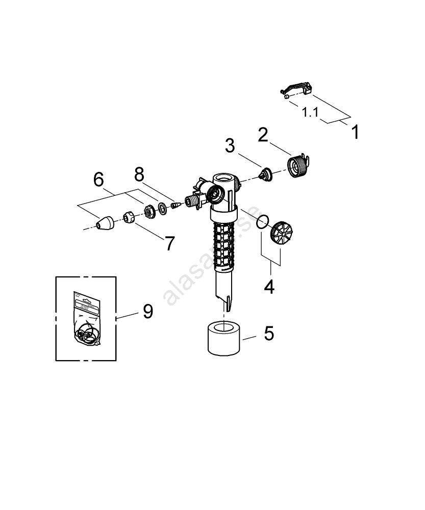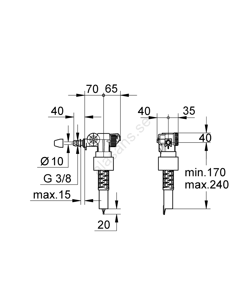 • Universell påfyllningsventil som passar för högt- och lågt monterade spolcisterner i plast, keramik eller gjutjärn.